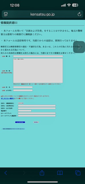 検察庁のホームページから メールの投書を何度も試みましたが 送信不可でした。「件名が入力されていません。」と 出て 次に進めず 受信拒否のまま、放置されたままです。情報拒否を改善する気が全く無い、まるで「伏魔でん」のようです。