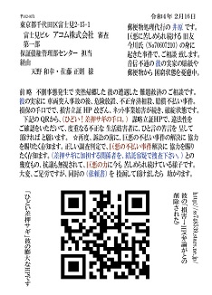 との幾度もの、抗議も無視されて、巨悪の力に今も 苦しめられ続けている様子です。大変、ご足労ですが、同封の (依頼書) を 投函して頂けましたら 助かります。 |